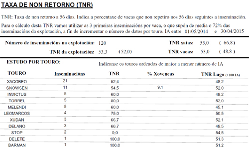 Ter en conta que factores como o número de inseminacións para cada touro ou o seu uso en xovencas inflúe no cálculo da TNR.